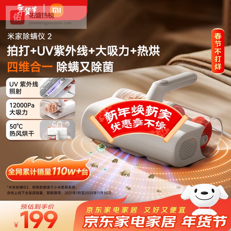 【京东自营】米家【年货爆款专享】小米除螨仪2床上大吸力杀菌除螨虫紫外线UV照射热风烘干家用轻便【床宝¥