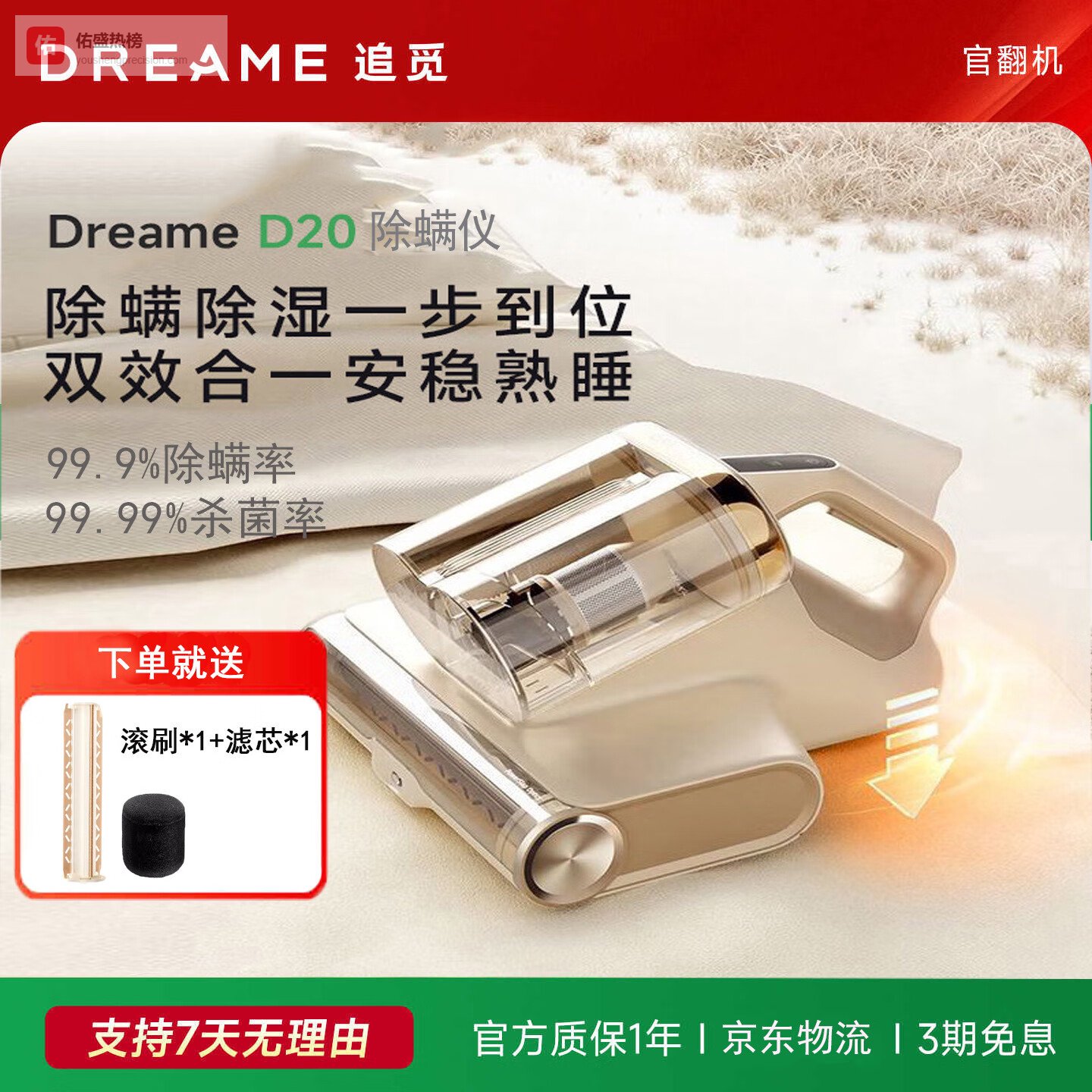 【品牌直营】追觅D20Pro除螨仪床上高温杀菌吸尘除螨一体机家用大吸力螨虫吸尘器官翻机【1年耗材套装¥
