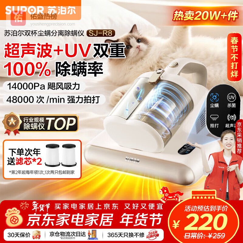 【京东自营】苏泊尔除螨仪床宝双杯尘螨分离家用去螨虫强力深层次除螨紫外线杀菌SJ-R8¥