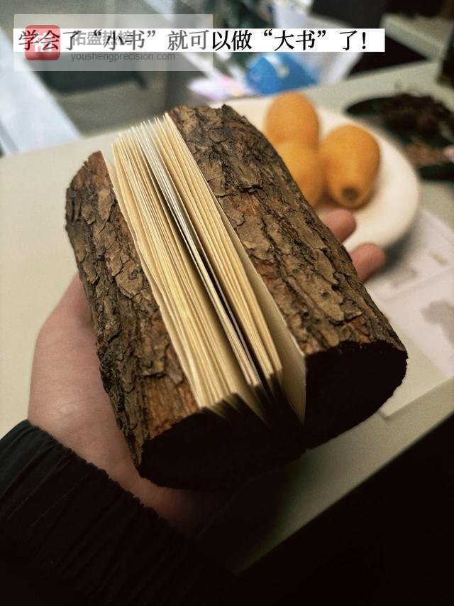用迷你树桩和纸张亲手缝制的小书。 受访者提供