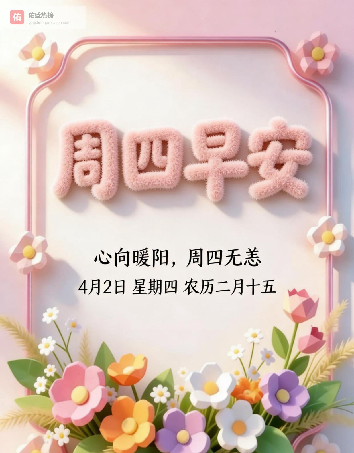 2. 晨雾渐散,暖阳轻洒,周四在安静与美好中缓缓到来。放下昨日的疲惫,带上今天的微笑,心怀希望,稳步向前。愿生活待你温柔,岁月予你安康,事事顺心,步步安稳,在平凡里收获满满的小幸福,周四早安。
