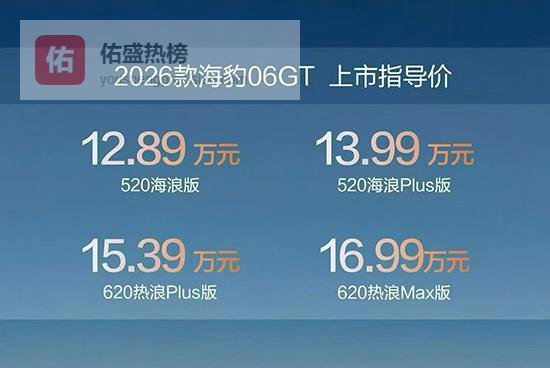 4月2日,2026款海豹06GT正式上市,新车共推出4款车型,官方指导价区间为12.89-16.99万元。同时,官方还推出高能车色礼、高能金融礼、高能置换礼等上市权益。