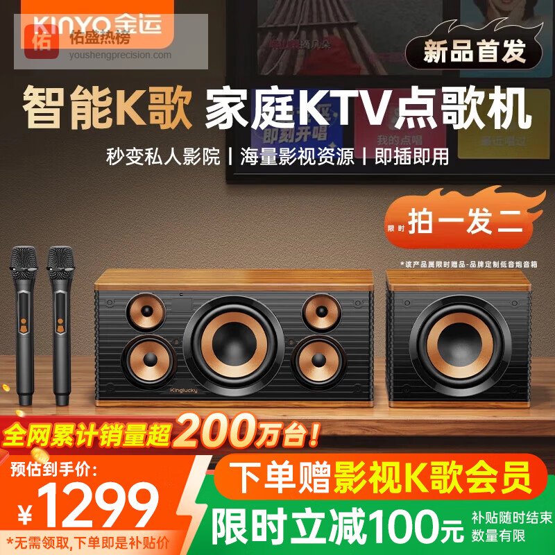 【品牌直营】金运【买一贈一】家庭ktv唱歌全套设备k歌麦克风音箱一体机智能点歌机无线话筒连电视卡拉O¥