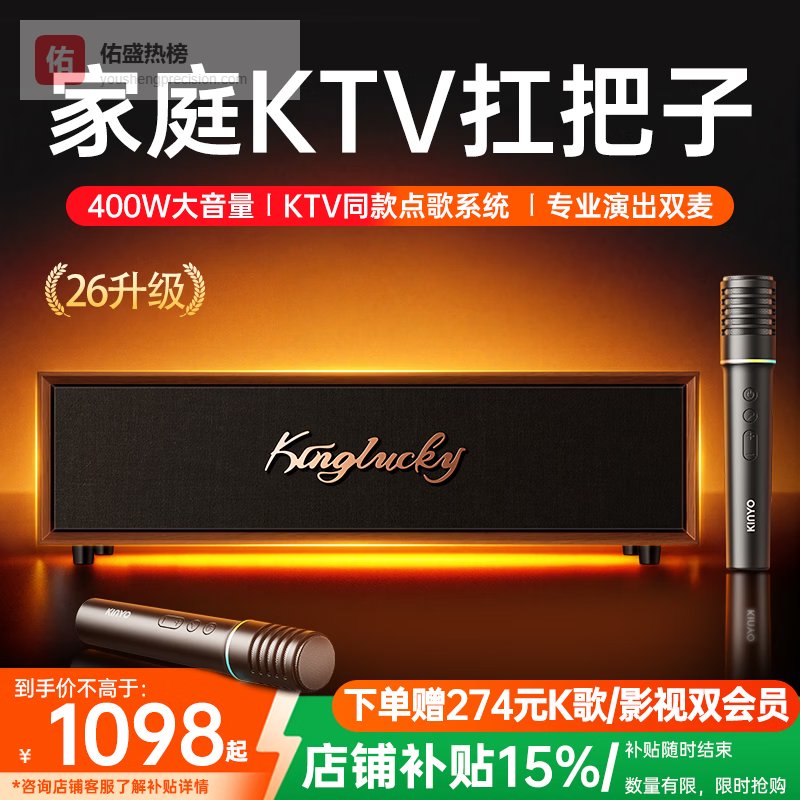 【品牌直营】金运【家庭KTV扛把子】家庭ktv音响套装k歌麦克风话筒卡拉ok一体电视手机点歌机蓝牙音¥