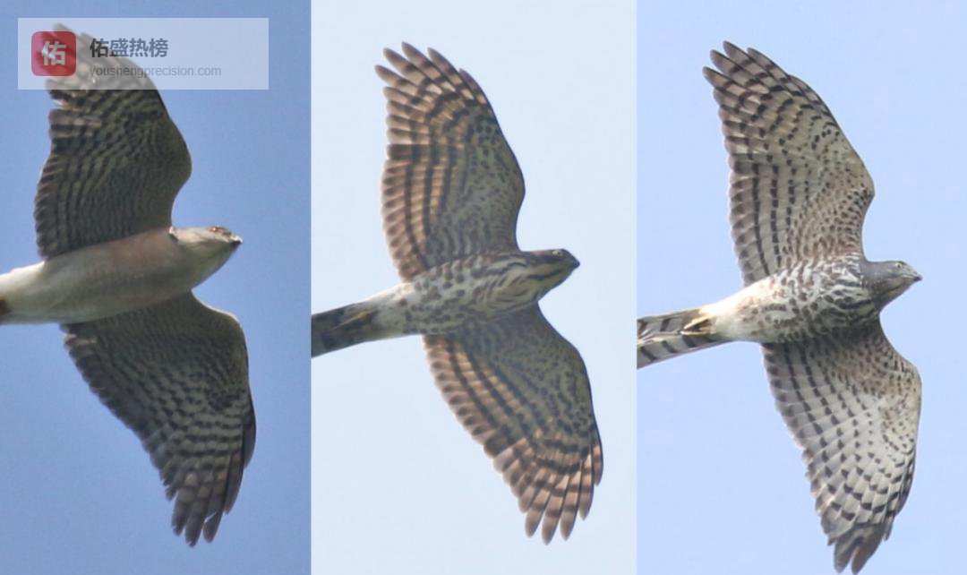 4.6 ❒ 腹部横斑——可能与换羽有关 不少幼鸟胸腹出现不规则横条纹,既不像日松的“桃心”,也不似松雀鹰的“水滴”,可能预示秋迁换羽。