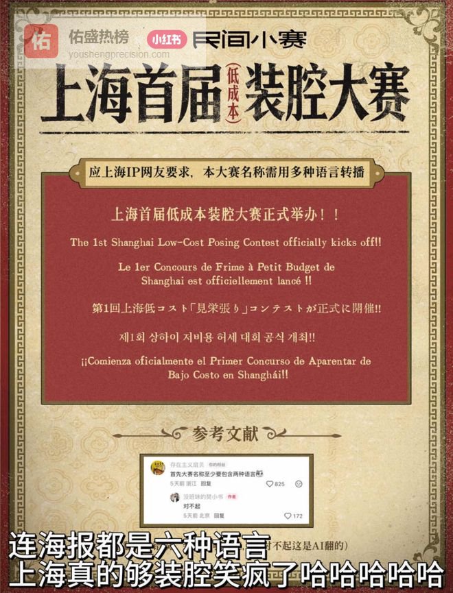 连比赛海报都被上海网友要求使用多种语言哈哈哈哈~