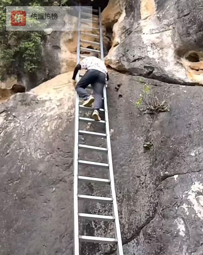 几乎完全垂直的梯子,只是看着就让人心惊胆战了。