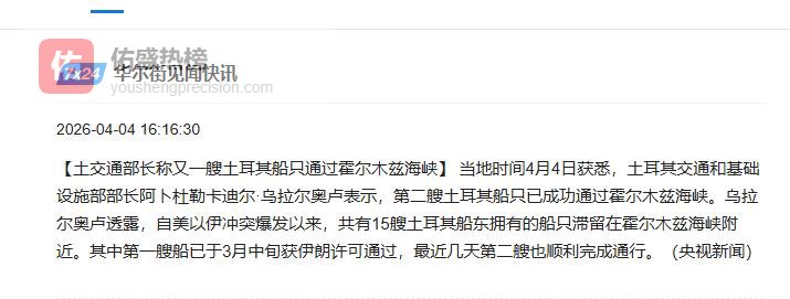 美国情报界最新评估结论:伊朗短期内不会放松对霍尔木兹海峡的控制,因为这里就是它抗衡美国的最大筹码。美国想武力打通?打不过。想谈判?伊朗不接茬。然而就在这个僵局中,土耳其的两艘船悄悄通过了海峡。一个超级大国被卡住咽喉,一个地区国家却来去自如,这画面着实讽刺。