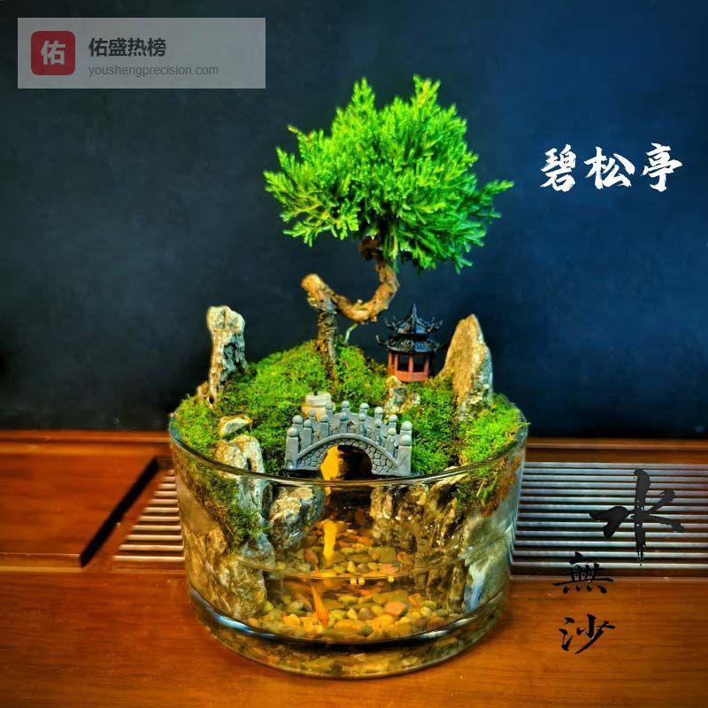 三、微景观鱼缸的艺术哲学当基础功能完善后,鱼缸就该进阶为水中微缩景观。这款高硼玻璃圆缸采用博物馆级透光材质,将东方山水意境与现代简约美学完美融合,是打造桌面生态艺术的上乘之选。