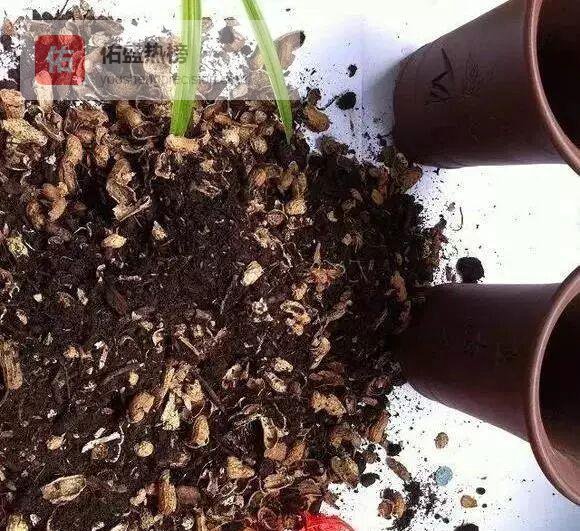 3.2 △ 花生壳——兰花的“根肥双修”神器 花生壳越碎越好,清水泡两天后挤干,装塑料袋加EM菌密封, 太阳下暴晒8–10天即可腐熟。按 花生壳:腐叶土=2:5混合,种兰花根系白胖如蒜,开花更勤。