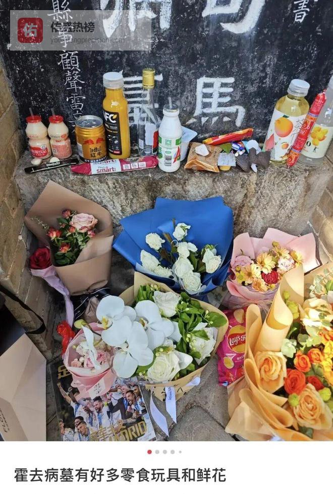 还有霍去病,这位西汉战神23岁就英年早逝,大学生们一算,这不就是刚毕业的同龄人?于是,画风突变,霍去病墓前瞬间变成了“零食铺子”。辣条、薯片、可乐……堆得满满当当。大家出发点或许是这样的:将军你这辈子太苦了,都在打仗,没时间享受现代年轻人的快乐。没关系,我们替你补上。