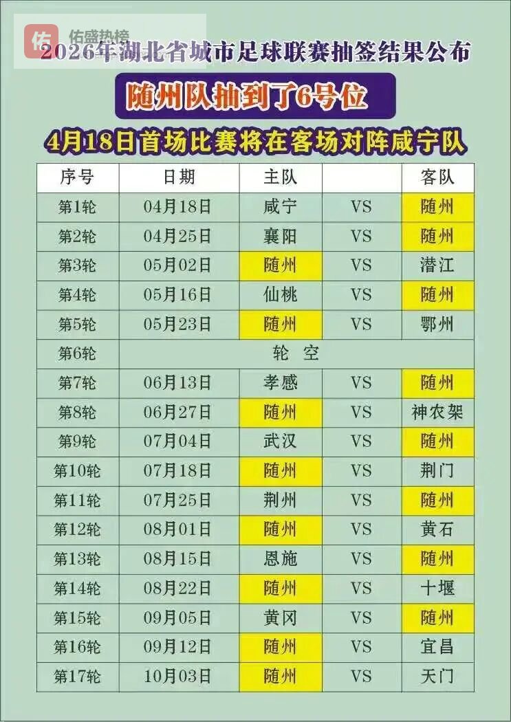 此次联赛随州将举办8场主场比赛,市民朋友可前往随州滨湖体育场现场观赛