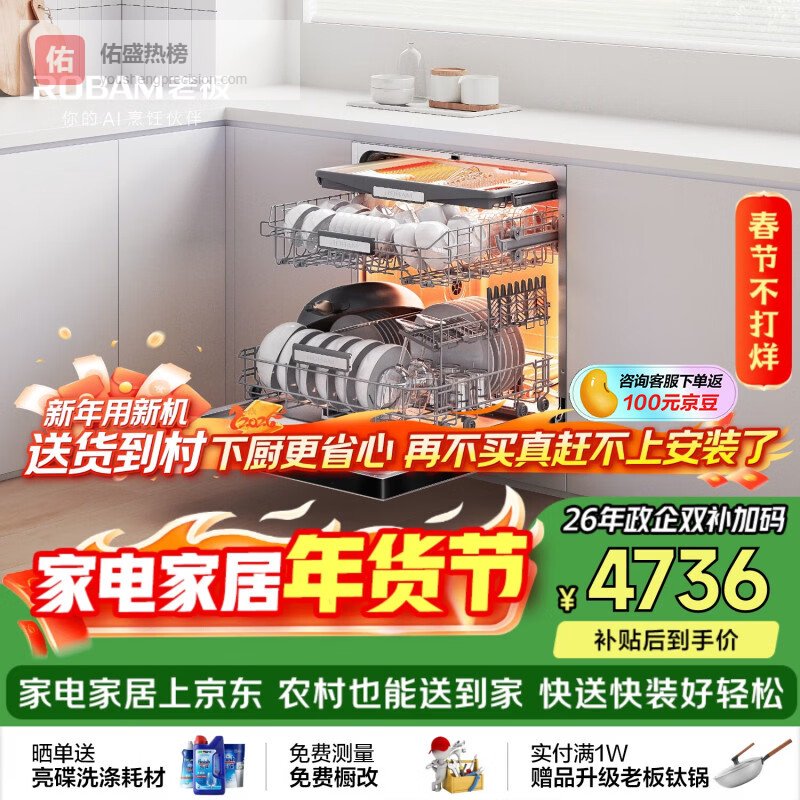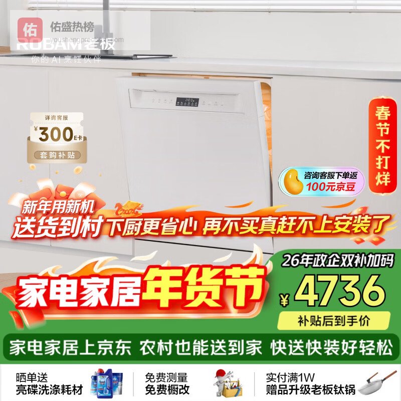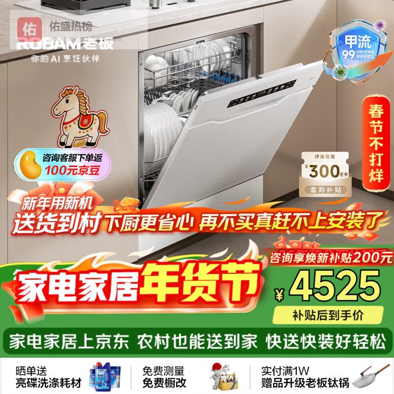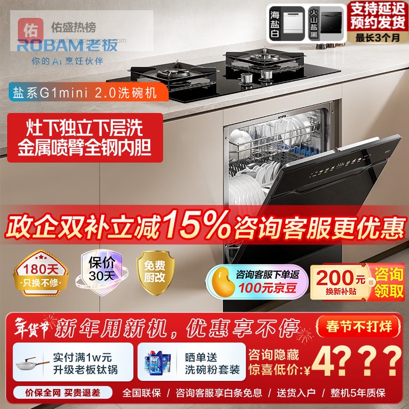 【京东自营】老板【灶下120L大容量】【甲流消杀】盐系G1mini2.0白嵌入式洗碗机家用全自动独立¥