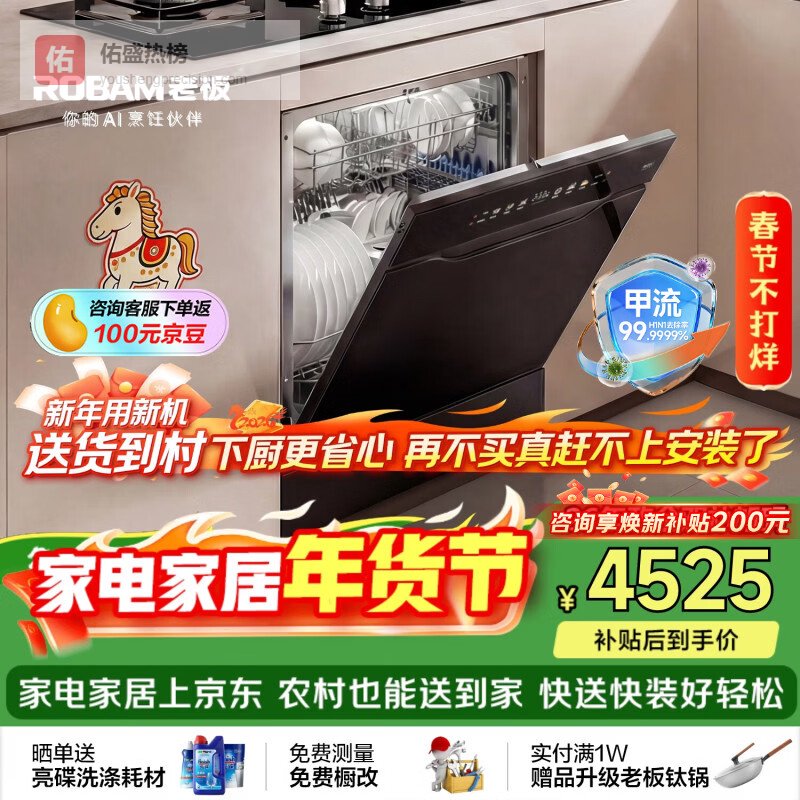 【京东自营】老板【灶下120L大容量】【甲流消杀】盐系G1mini2.0黑嵌入式洗碗机家用全自动独立¥