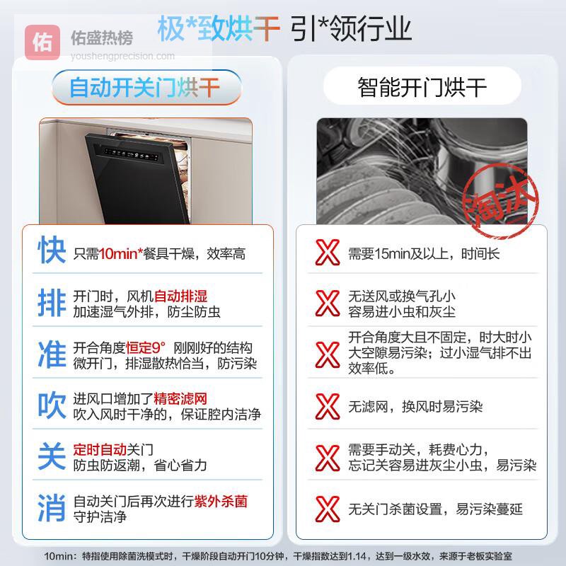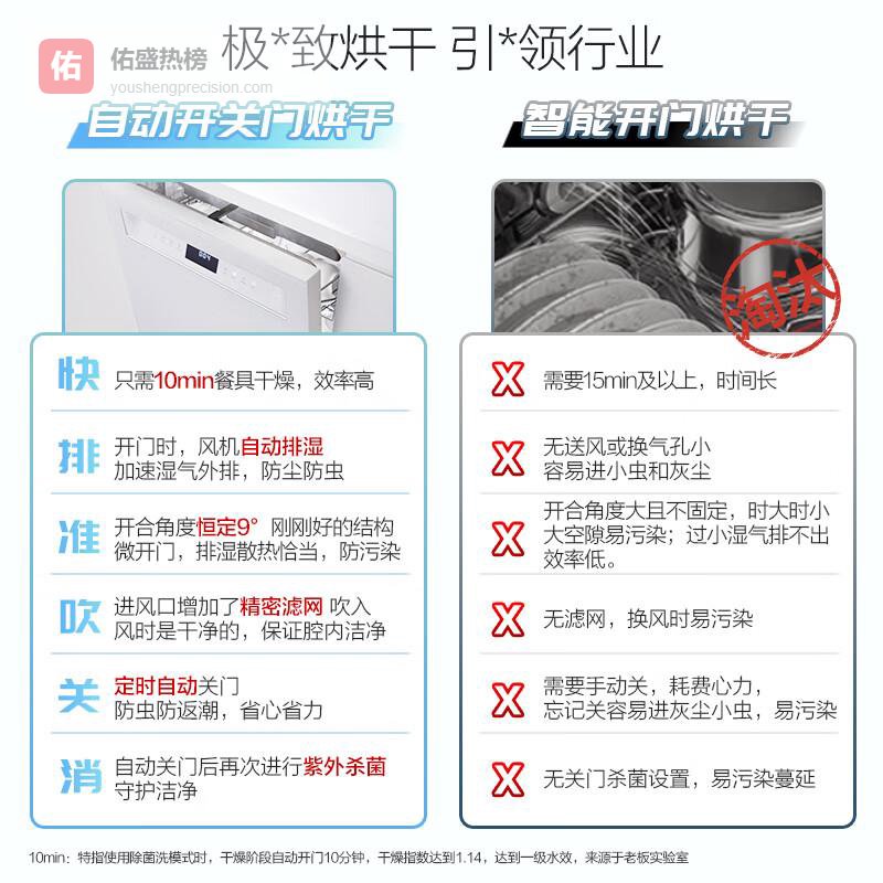 自动门热风烘干,快速无水渍:蒸发水分迅速,保证餐具干燥后无残留,让使用更安心。