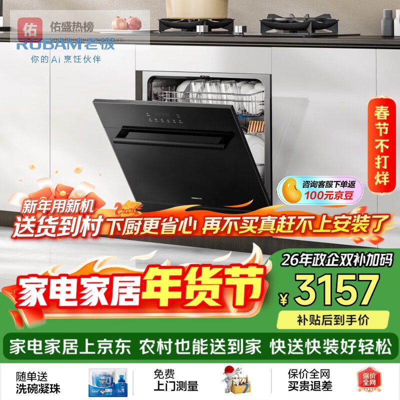 【京东自营】老板【灶下0菌认证】星辰W60B01A灶下可装106L嵌入式洗碗机家用全自动热风烘干涡轮¥