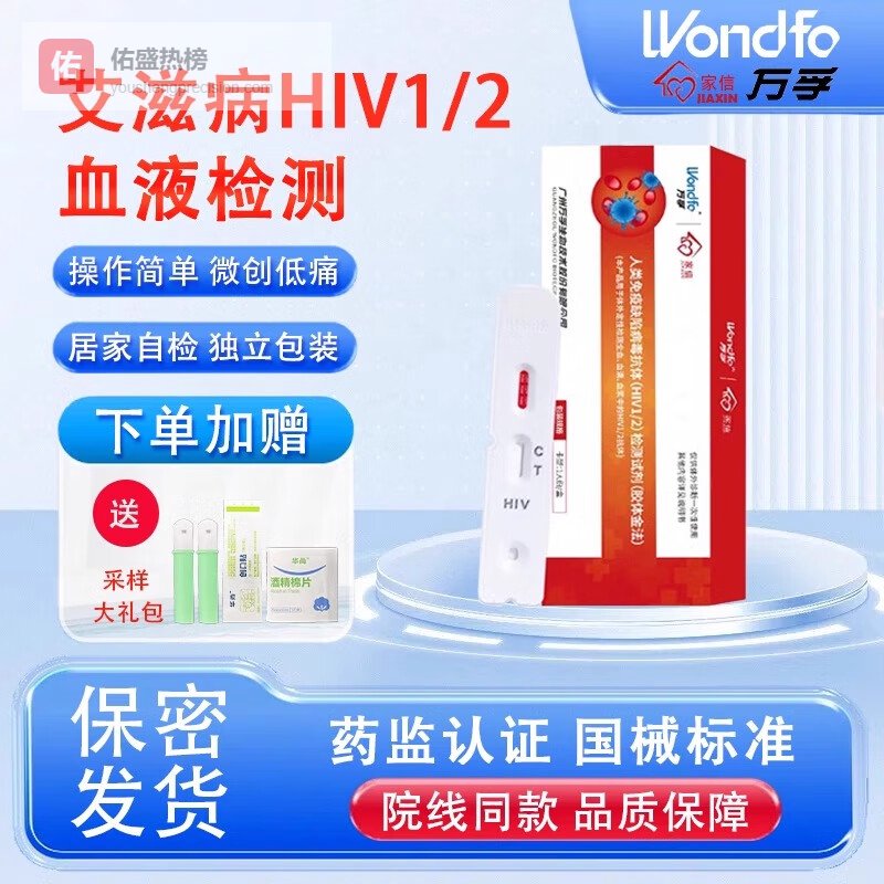 万孚艾滋病HIV检测四联试纸hiv梅毒自检盒传染病四项四合一非第四代 【普快】艾滋血检1盒¥