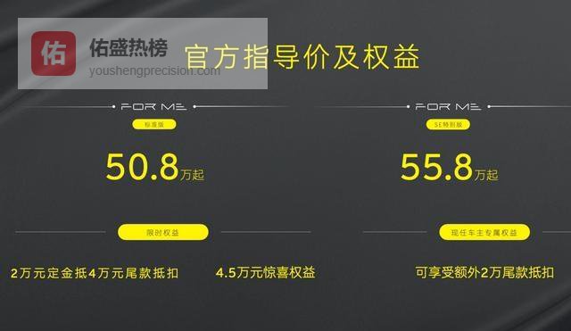 2026年3月29日晚,在北京首都国际会展中心的发布会上,莲花跑车正式宣布旗下首款超混SUV For Me上市,共推出标准版和SE特别版两款车型,官方指导价分别为50.8万元和55.8万元。次日即开启全国交付,节奏快得像在跑F1的维修区——预售价52.8万起,上市就降了2万到3万,全系选配改标配,3月30日交车,这样的执行力在超豪华品牌里几乎没怎么见过。