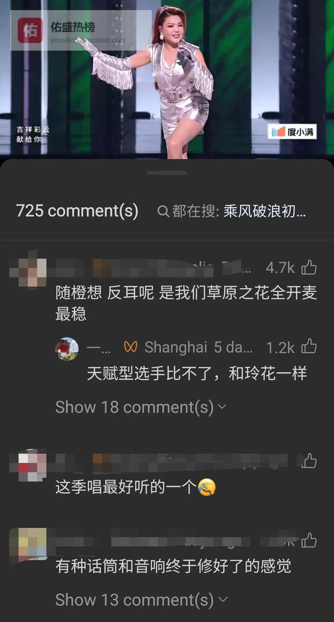 上半期初舞台播出后,代斯、何宣林、来自越南的庄法,都成了黑马,获得极大关注。而在网上已经被玩成梗的乌兰图雅,由于现场实在太稳堪称修好了话筒,直接变成了观众认真pick的实力唱将。