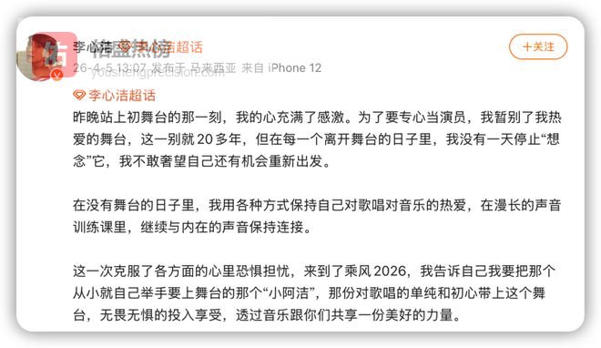 而且重返舞台真的是她的心愿之一。她这么多年一直在维持着训练,保持对音乐的热爱,一开嗓还是这么惊艳。所以她就是值得这么多好评呜呜呜。