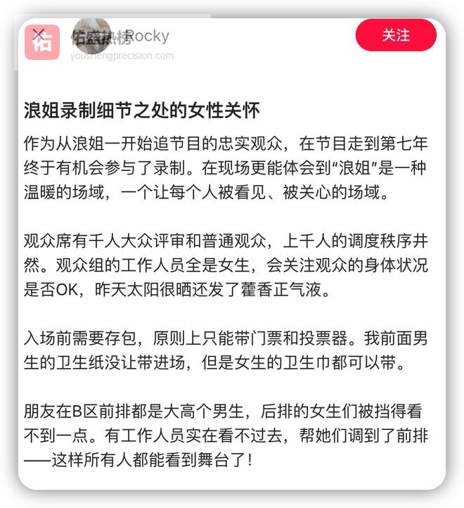 有现场观众发了repo整个节目组都有照顾女性的意识。