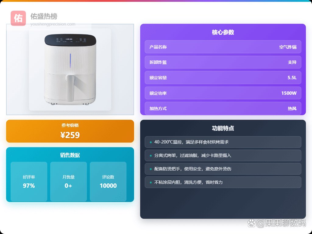 1️⃣ 大容量空间:这款山本8208TS空气炸锅有3-5升容量,基本可以满足一家四口的日常需求,比如炸薯条、烤整鸡或者做肉干,空间还算挺宽敞的,日常做饭用起来挺方便的,也不会感觉局促。