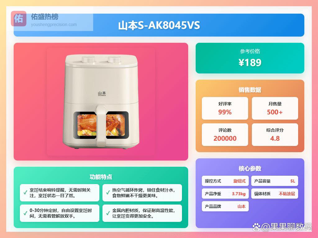 山本空气炸锅哪款好,介绍几款不错的实用型号1、山本S-AK8045VS