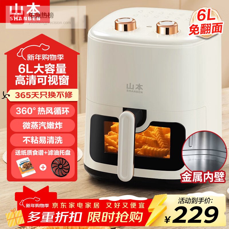 3、山本 6L可视空气炸锅