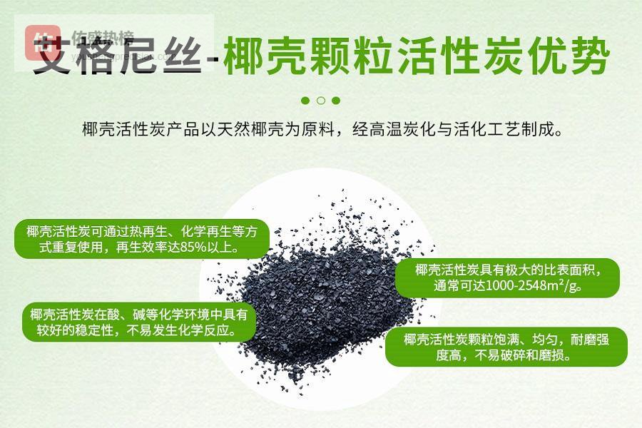 气体净化分离:用于吸附去除空气或工业废气中的有机蒸汽、异味等成分,改善工作环境或满足排放要求。液体提纯精制:在糖业、味精、饮料等食品工业中,用于脱色、除臭、去除杂质;在水处理领域,用于深度净化水质。催化剂载体:凭借其稳定结构和巨大比表面积,可作为某些化学反应的催化剂载体使用。当然,要充分发挥椰壳活性碳颗粒的作用,正确的选型和使用方法至关重要。不同行业、不同处理目标对椰壳活性碳颗粒的规格(如粒径、碘值等)有着不同要求。企业在选择时,应结合自身工艺条件与需求进行考量。艾格尼丝提供的椰壳活性碳颗粒产品系列较为齐全,能够满足多样化的工业应用需求。