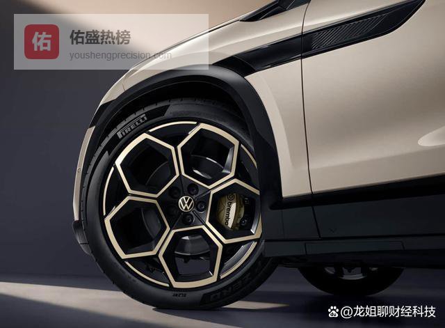 说实话,见到实车的第一眼,它颠覆了我对大众“套娃”设计的刻板印象。这台车不再是沉稳的西装革履,而是穿上了“机能风”的外套。 短前悬、长后悬的设计配合长达1.5米的发动机盖,让整台车有种俯冲向前的蓄势感。5米的车长和3030毫米的轴距,让它站在那里就自带中大型SUV的压迫感。同时细节很耐看,前引擎盖上的中轴线一直延伸到车内,日行灯内部是密密麻麻的三角形排列,LED灯珠可以独立点亮。车尾的发光狼标和400多颗LED组成的水晶镭雕车灯,夜晚点亮时辨识度拉满。让人心动的是高位刹车灯上那个沃尔夫斯堡狼头标志,这个细节让我忍不住多看了几眼。贯穿车身的金色饰条致敬中式对称美学,金标LOGO的点缀确实让档次感上了一个台阶,21英寸的大轮毂确实帅。