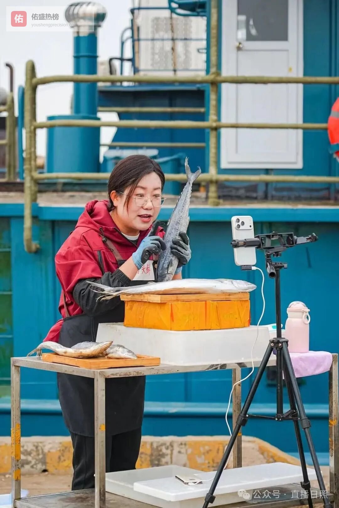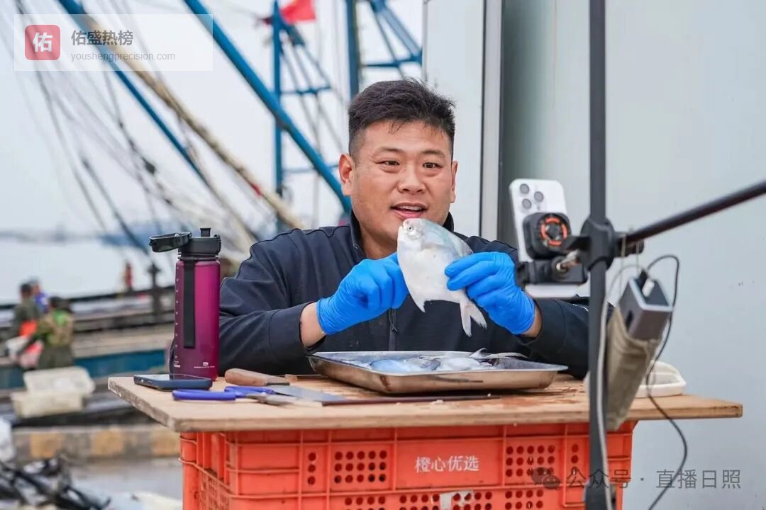 现场还有不少渔民架起线上直播设备