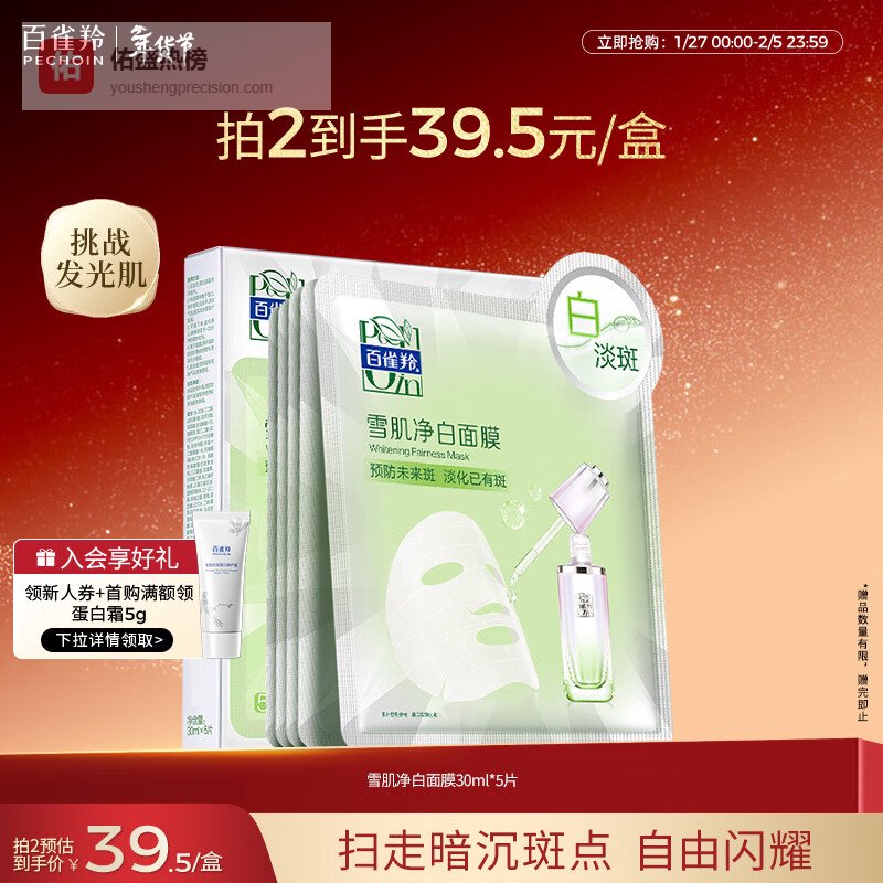 【京东自营】百雀羚雪肌净白面膜5片装面膜美白补水淡斑晒后修护品质国货新年礼物¥
