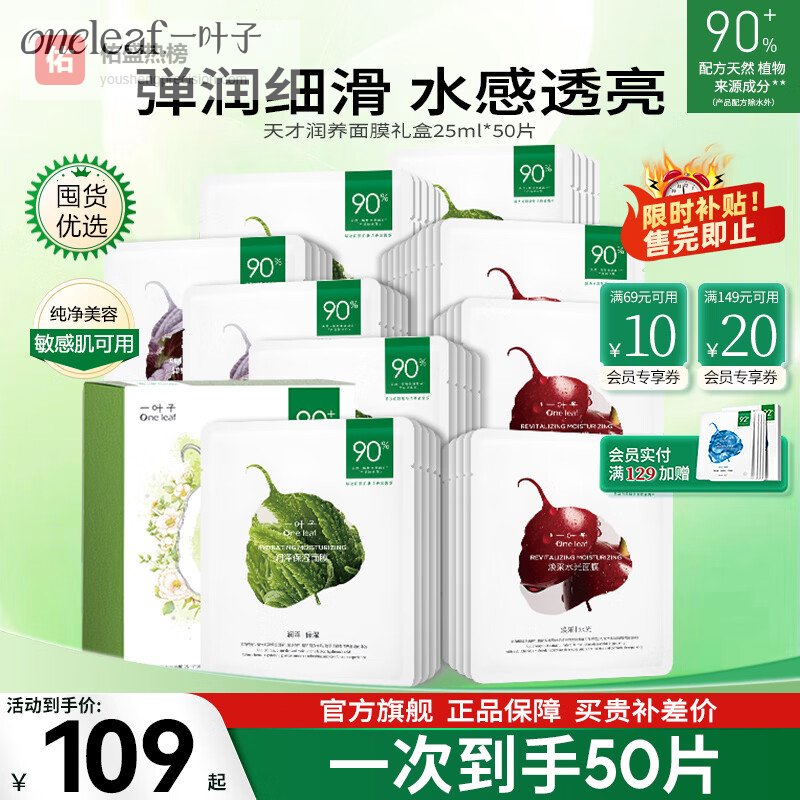 【品牌直营】一叶子面膜新年礼物女送女友补水保湿锁水弹滑提亮紧致女护肤品天才美白面膜50片¥