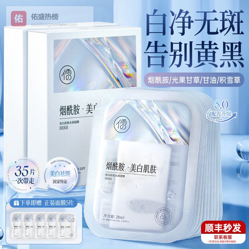 【品牌直营】儒意377美白补水面膜淡斑提亮肤色女男士抗皱紧致衰男女士敏感肌【告别黄黑】烟酰胺美白面膜¥
