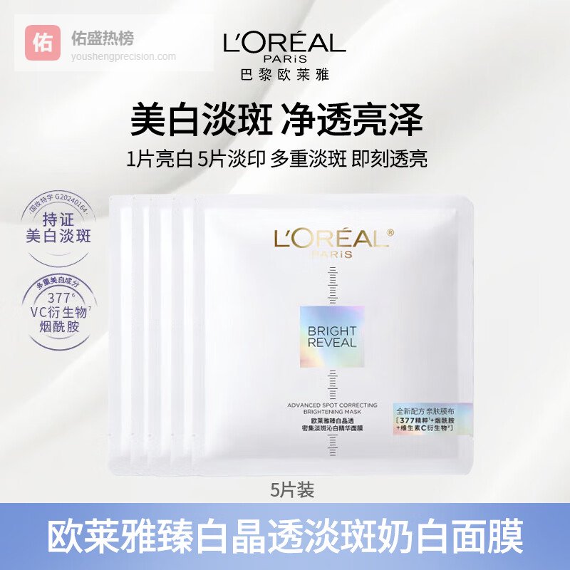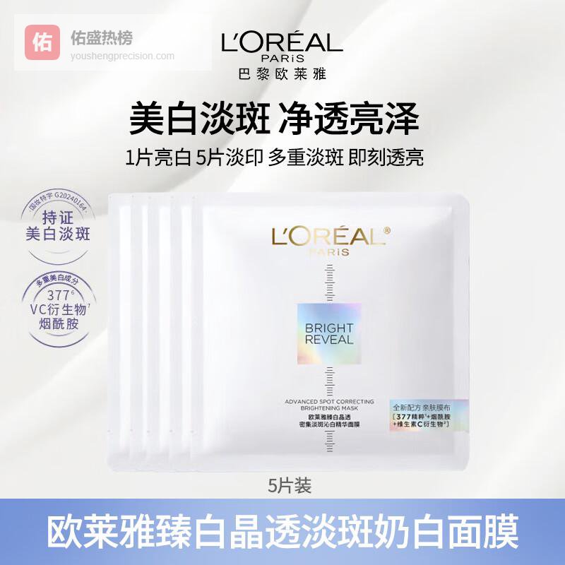 【品牌专卖】欧莱雅美白淡斑面膜补水保湿提亮377奶白精华补水保湿面膜护肤新年礼物奶白面膜5片【散装】¥