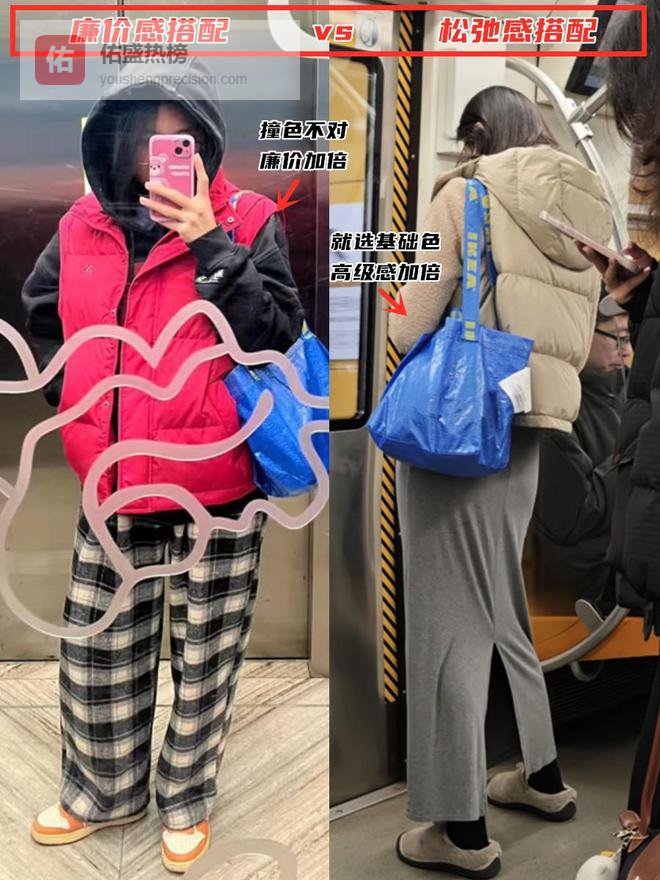 当你的衣服面料呈现出高级的光泽感和垂坠感时,那个5块钱的袋子反而会成为一种“反向衬托”,让人觉得你是一个极其自信、不屑于用奢侈品堆砌自我的时尚玩家。