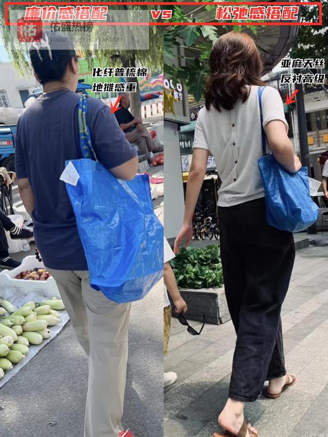 往往是因为全身都堆砌了廉价的化纤面料。要实现松弛感,你需要学会“以贵衬廉”。当你拎着宜家袋时,身上的衣服面料必须经得起推敲。选择天然纤维,如羊绒、真丝、精纺羊毛或高支棉。