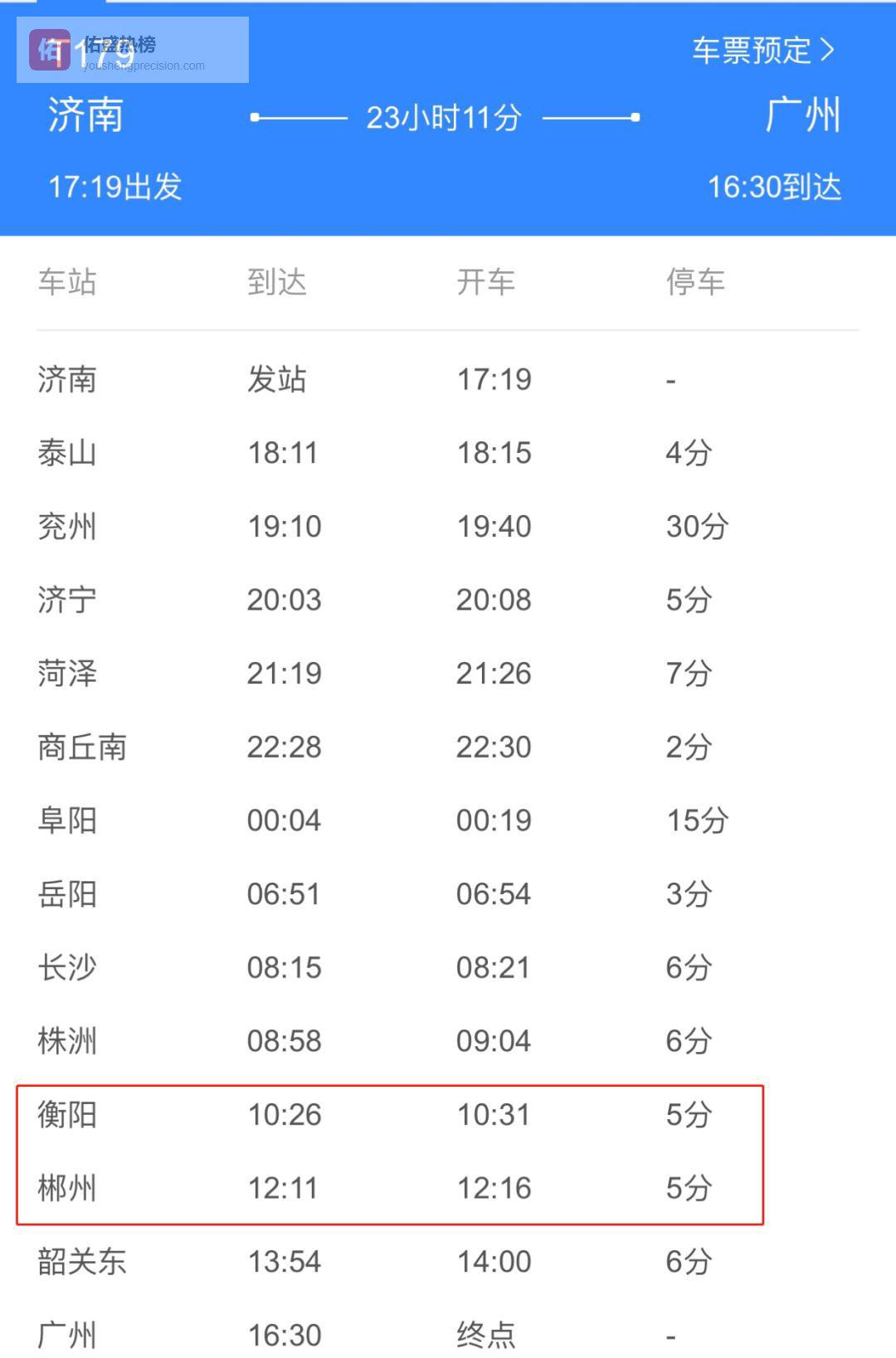 ▲T179次(济南至广州)列车时刻表。