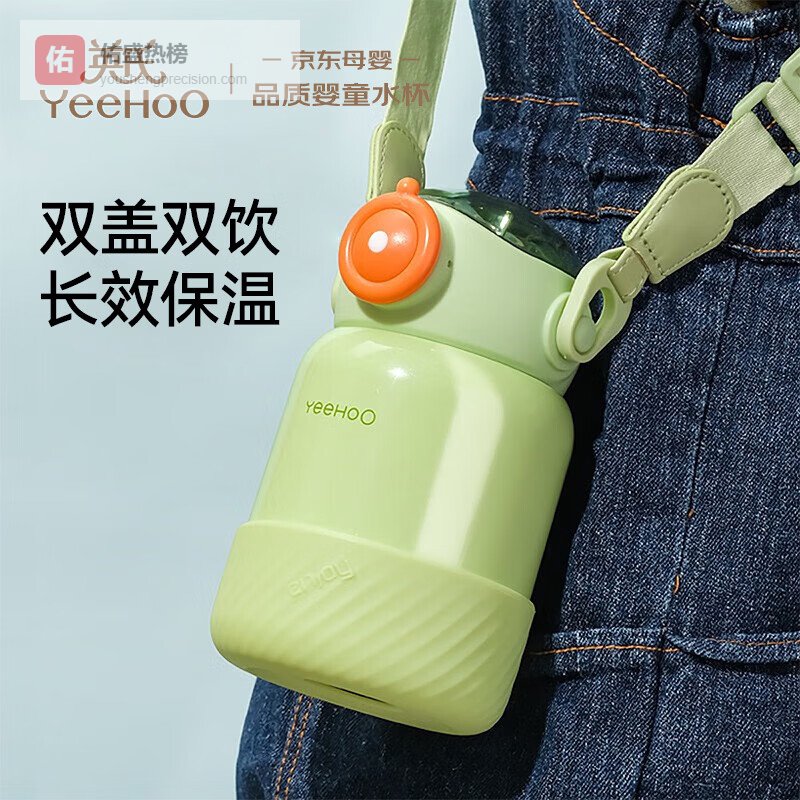 英氏(YEEHOO)保温杯316儿童吸管杯带杯套婴儿保温杯宝宝儿童保温水杯子 苹果绿¥