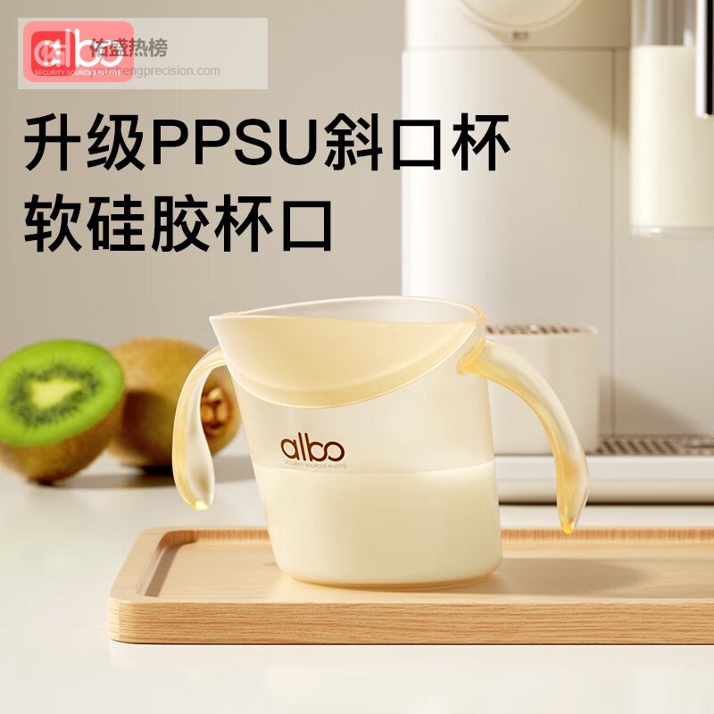 albo敞口杯宝宝水杯2岁以上直饮喝奶PPSU斜口学饮杯家用儿童牛奶杯¥