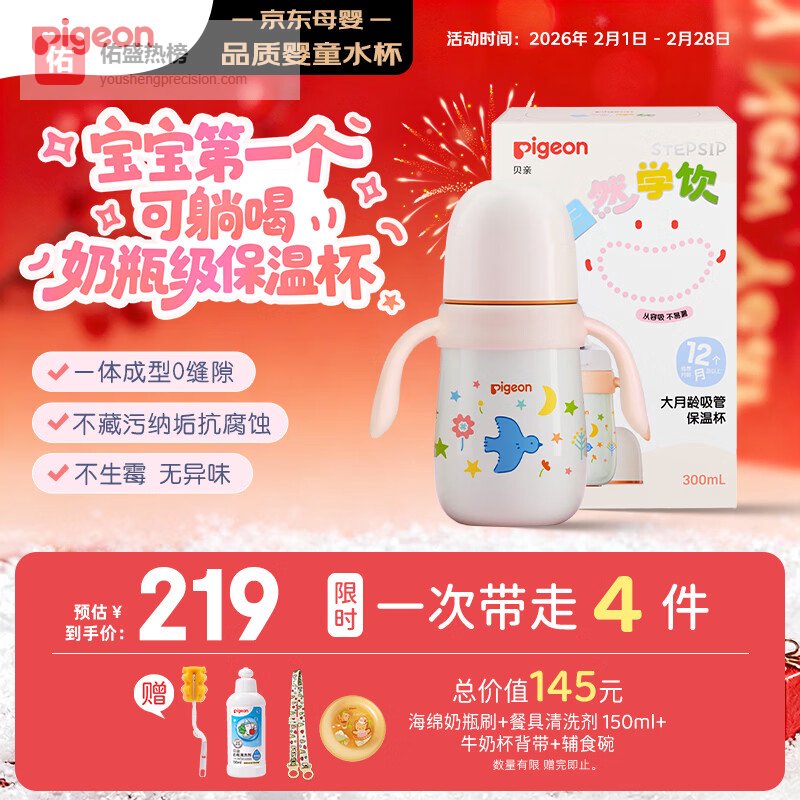 贝亲(Pigeon)宝宝儿童彩绘保温杯水杯保温奶瓶吸管学饮杯防呛防漏300ml 12月+¥
