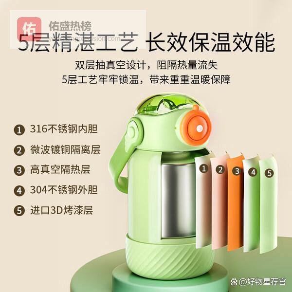 这款水杯的6层锁温壁垒,采用真空隔热技术,保温效果还不错,不管冬天还是夏天,都能帮你防止温度流失。它的结构设计很严密,密封性能强,三重密封和硅胶圈保护,防漏防洒还靠谱。加上安全锁扣和气压平衡设计,使用起来既安全又便捷。整体看上去坚固耐用,孩子拿着也挺放心,外壳材质304不锈钢,抗摔耐磨。