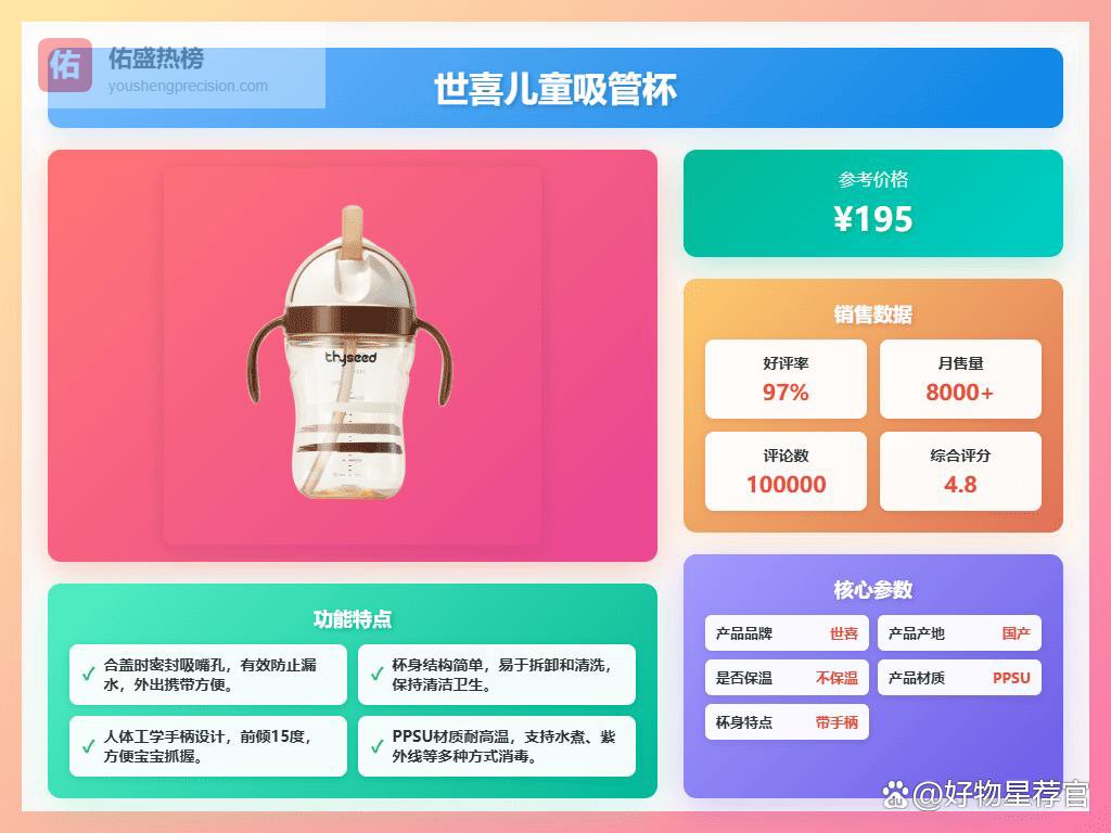 最近好多朋友问我:“儿童水杯哪个牌子好?推荐十大品牌,安全又耐用!”说实话,给孩子选水杯真是个头疼事儿,既要安全放心,材质过关,还得考虑耐用性,毕竟孩子嘛,磕磕碰碰是常有的事。选不好,不是漏水就是容易坏,真心累。而且现在的水杯真的是五花八门,贵的便宜的,看得人眼花缭乱的,真心不知道怎么下手。经过我这一年多给娃买水杯的经验总结,还真有点心得,不一定多专业,但绝对实用,都是我踩过坑换来的经验教训。