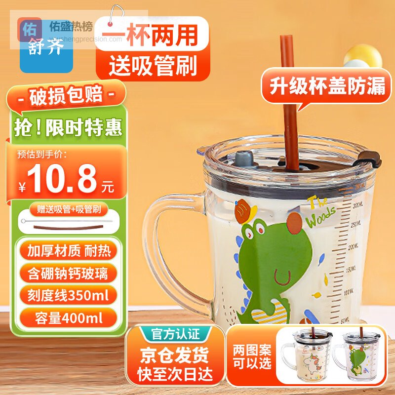 舒齐儿童牛奶杯学饮杯家用宝宝冲泡奶粉杯带刻度杯吸管带把玻璃水杯¥