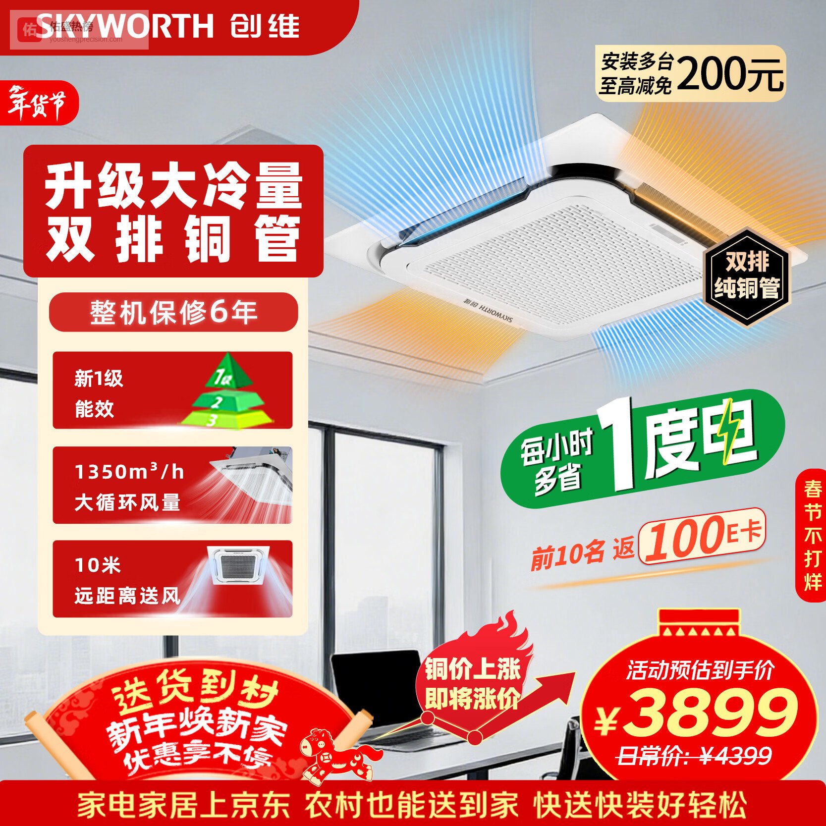 商品推荐:创维中央空调3匹天花机变频冷暖一级能效