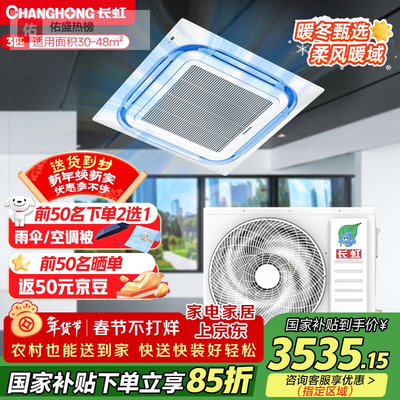商品推荐:长虹中央空调3匹一拖一天井机一级能效