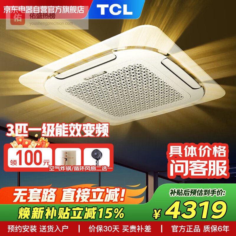 商品推荐:TCL中央空调3匹天花机变频冷暖一级能效