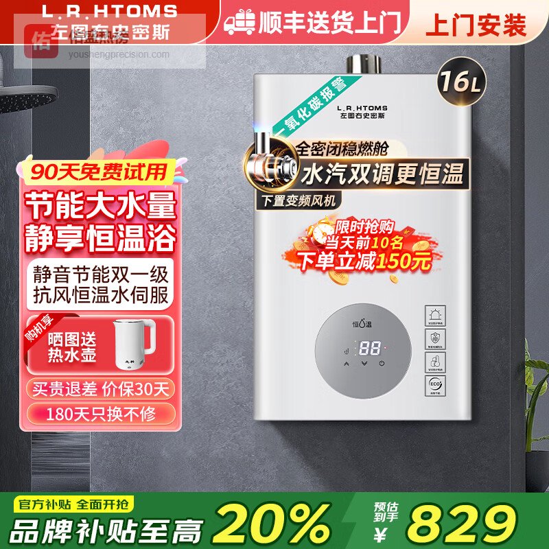 4、L.R.HTOMS16L这款燃气热水器配备零冷水功能,一开即热,完全无需等待,大大提升使用舒适感。精准控温系统结合水气双调技术,能实现水温的恒定,确保每次沐浴都能享受到稳定的温度,带来极致的舒适体验。它还具备智能微电脑调控芯片,自动监测水温变化,瞬间调节水气比例,让你每次出水都温暖如春。