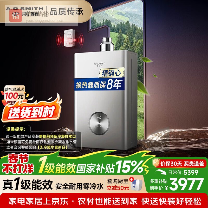 史密斯(A.O.SMITH)佳尼特燃气热水器16升 家电 零冷水精钢不锈钢换热器包 8年 恒温耐用TJ1 16L¥