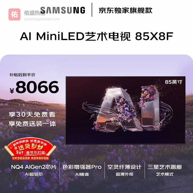 【京东自营】三星高端款85X8F85英寸量子点AIMiniLED艺术电视壁纸电视超薄平嵌144HzQ¥